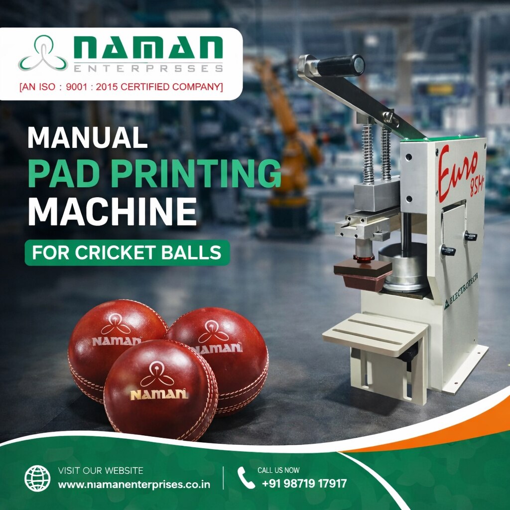 Boost your product branding with the Manual Pad Printing Machine for Cricket Balls by Naman Enterprises. Specially designed for precision printing on curved and uneven surfaces, this machine ensures sharp, durable, and high-quality logo impressions on cricket balls.