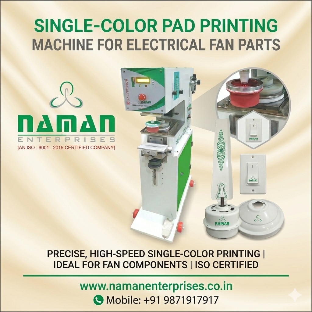 In the competitive electrical appliances market, high-quality branding is what sets your products apart. Naman Enterprises, a leading manufacturer based in Ghaziabad, offers state-of-the-art Single-Color Pad Printing Machines specifically engineered for the electrical fan industry.